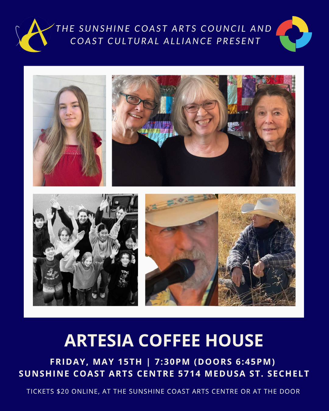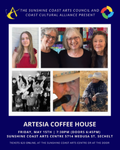 On Friday, May 15th 2026, the Coast Cultural Alliance in partnership with the Sunshine Coast Arts Council presents the 24th season of the Artesia Coffee House