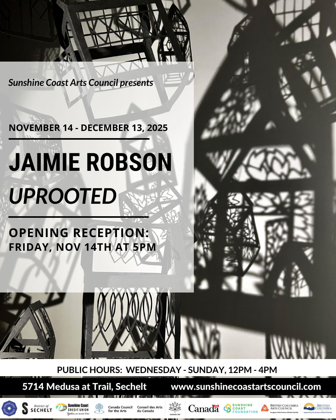 Uprooted is an immersive installation that explores the notion of home and belonging at a time of wildfires, uncertainty and uprooting. It contemplates the grandeur of British Columbia’s ancestral forests and evokes collective loss and grief in relation to impending climate change. The project poses questions about environmental change, and the complexities of our relationship with the land we live on. The installation combines intricate paper cutouts with projected light to create interactive and participatory experience.