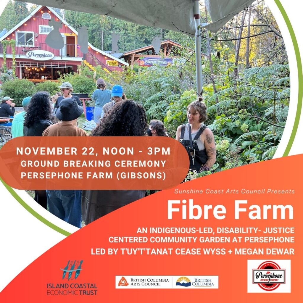 This Ground Breaking Ceremony will honour the beginning of the Fibre Farm project. Fibre Farm is an indigenous led and disability justice centred project located on Squamish terriory at the Persephone community farm. This project is motivated to seek a  closer relationship to the land. Building an accessible gathering space for our community to participate in remediating a wetland ecosystem, participating in dynamic workshops and teachings, and processing natural plant material, Fibre Farm will be a space to create community around culture and fibre artistry and practices. You are invited to witness and participate in this ceremony which will involve inoculating the wetland and pond with native rhizomes and seeds.