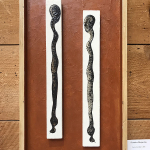 This fortunate find, much like archeological artifacts, demanded attention and further close examination. Unmistakably, this matching pair, previously conjoined, now a couple, are now meant to speak to the viewer, or to each other, or not.