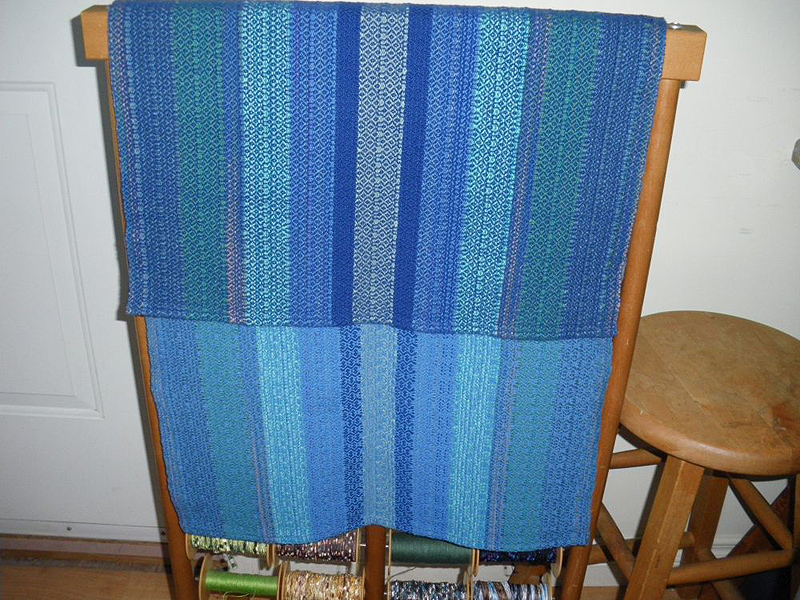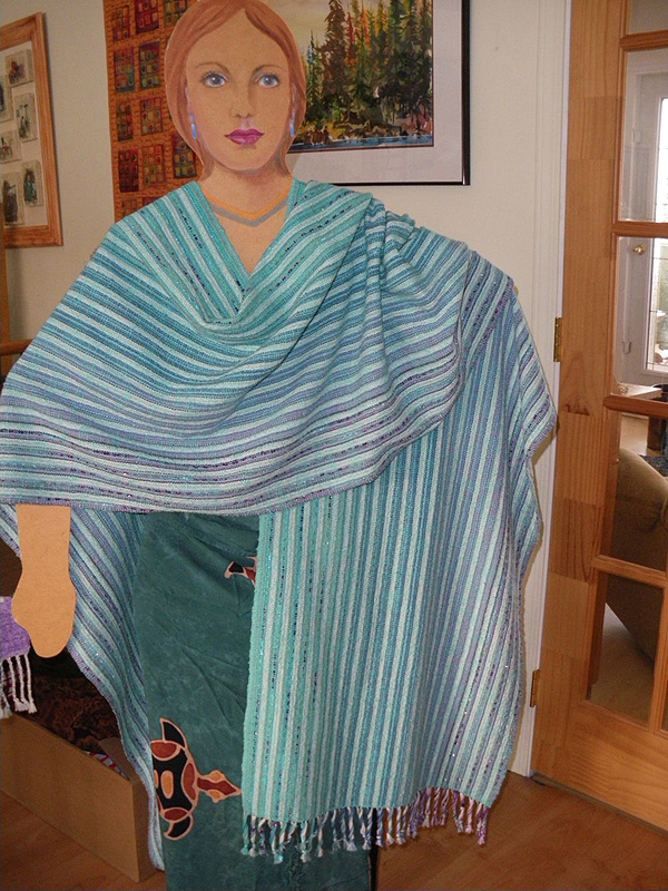 Jan’s Weaving Studio is part time in Pritchard and Halfmoon Bay. I work on simple looms, playing with colour and texture. I weave shawls, ponchos, scarves for wear, and placemats, towels and napkins for the home.