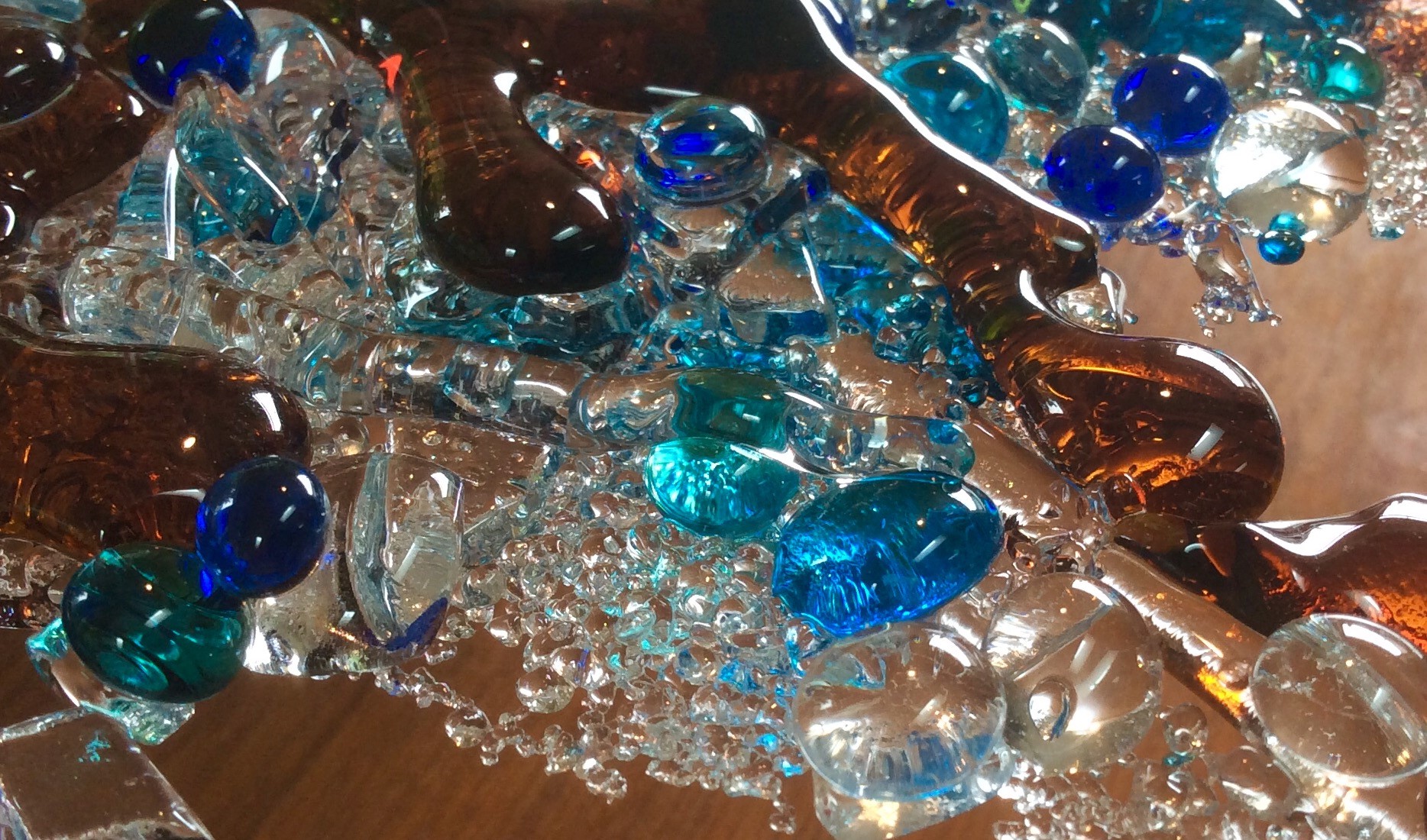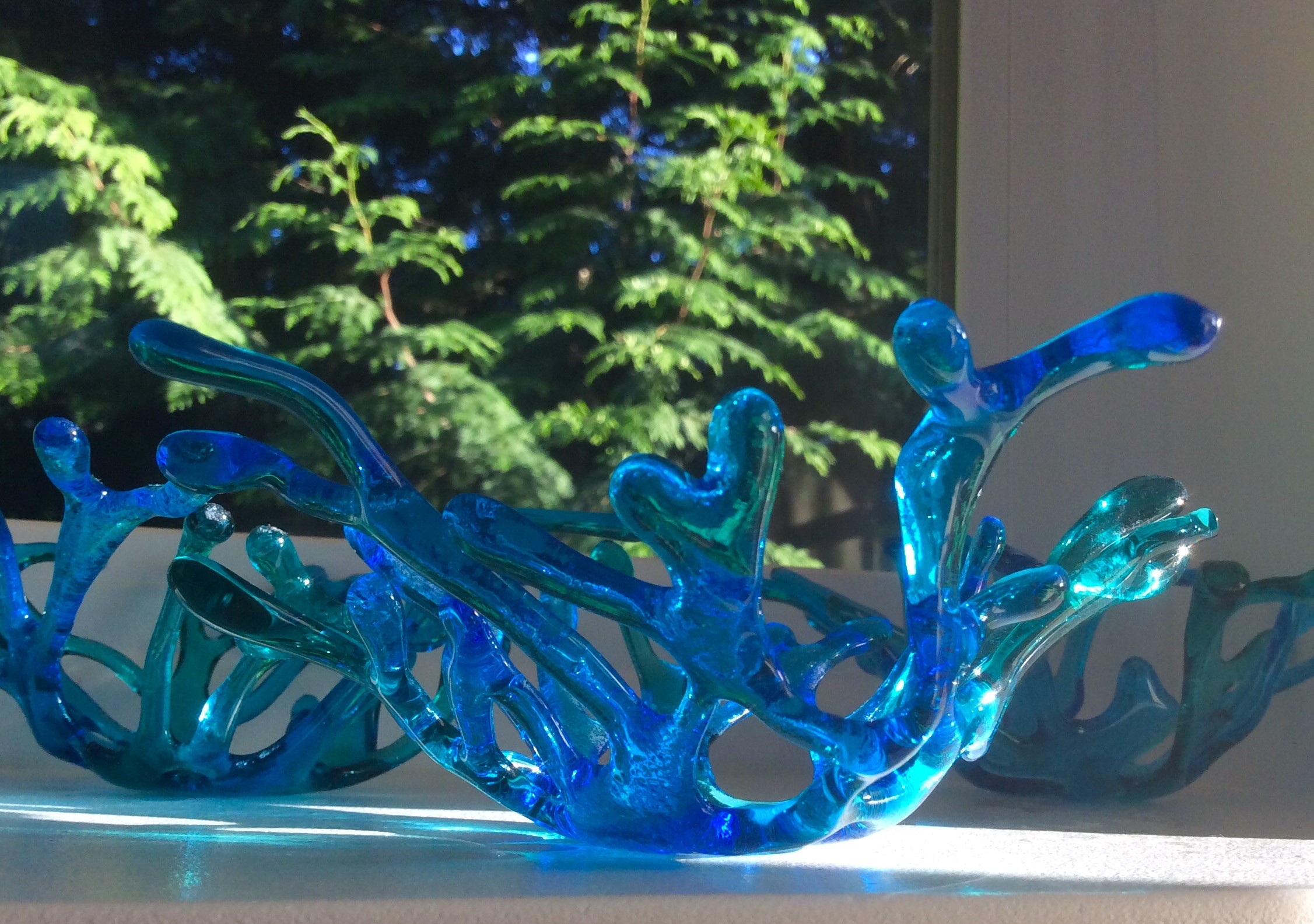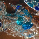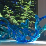 What began as an appreciation of the beauty glass can hold… has developed into a passion for pushing boundaries & creating unique fused glass pieces. Constantly inspired by the Pacific Northwest, Claire uses heat and imagination to reflect that beauty into her work. Not one for straight lines, you will feel the gentle movement of the wind and water through all her glass work. Candle holders, soap dishes, glass chimes, and the beautiful plates & bowls are all hand cut, designed, and fired in her Sechelt studio.